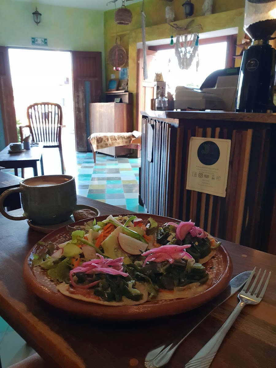I’m from Melbourne, Australia and we have a pretty strong cafe culture - this place was so unbelievably good I almost can’t explain. We had the tacos and the tortilla. Both were exceptional. So fresh. So full of delicious vegetables. The Halva latte was amazing. I’ve never come across sesame milk before and it was like an absolute revelation. My friend had a mango and banana smoothie which was also amazing. Service top notch. Gorgeous decor. One of the best cafes I’ve ever been to. Even if you’re not vegan (which we aren’t) just go there.