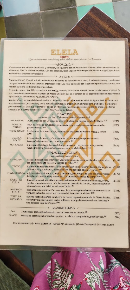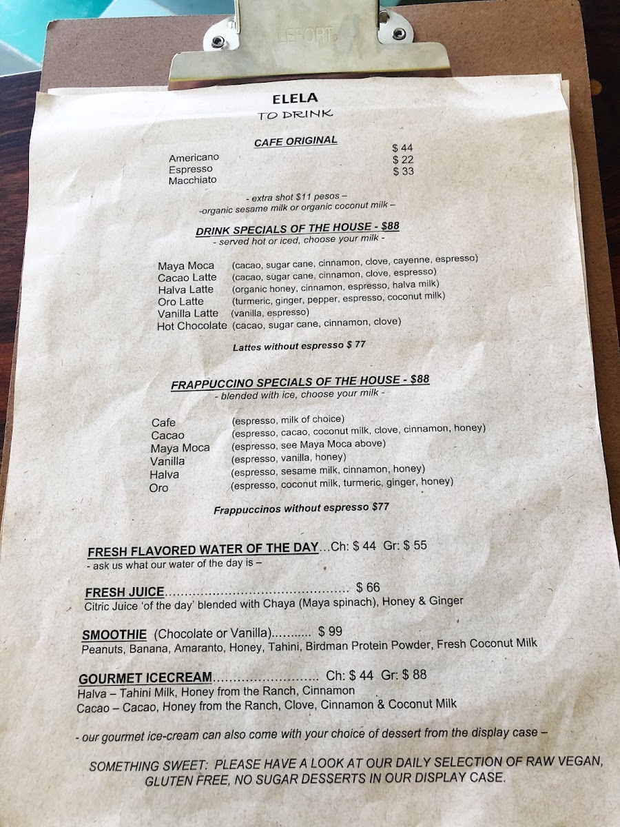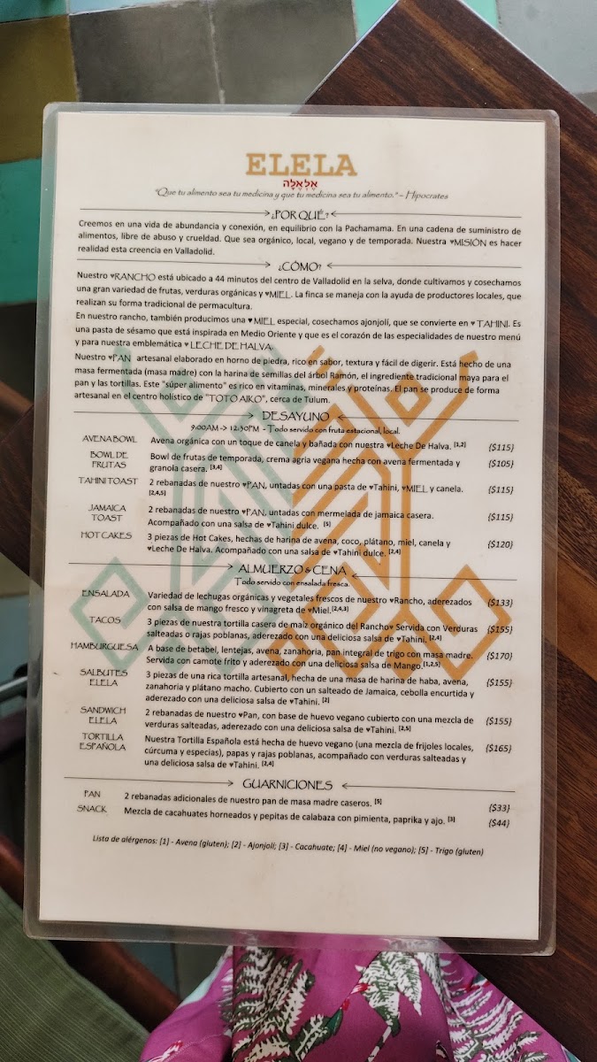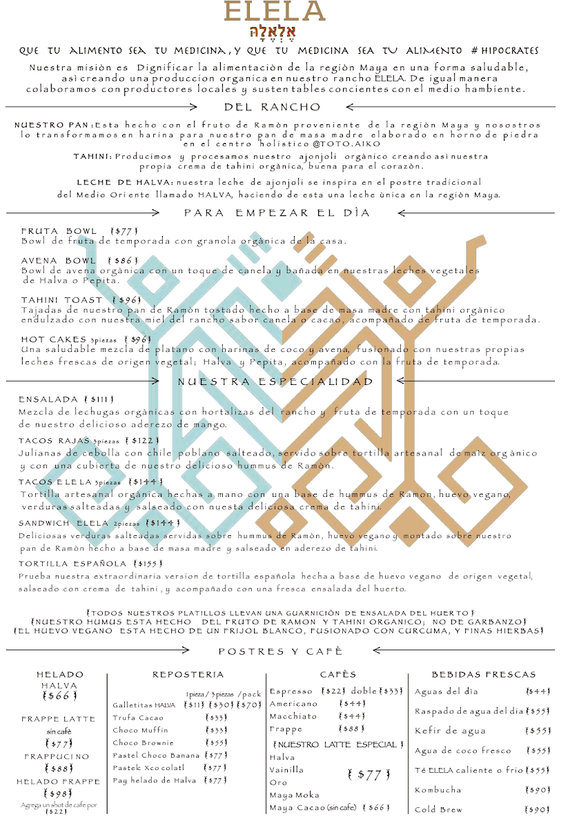 ELELA ORGANIC VEGAN CAFE Y RESTAURANT Menu