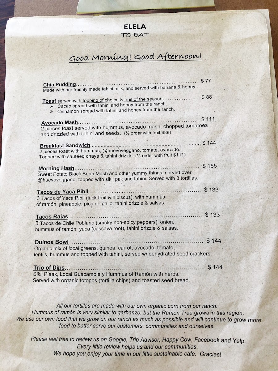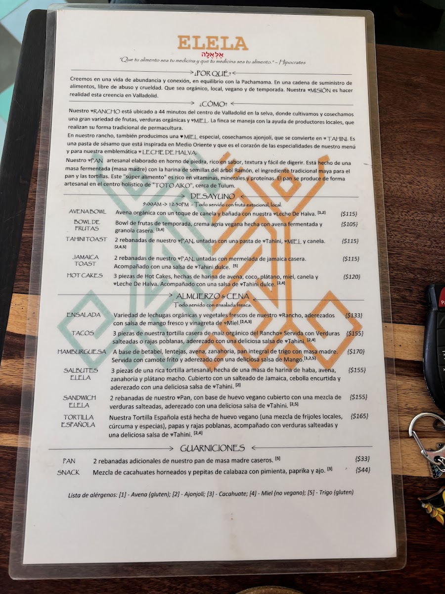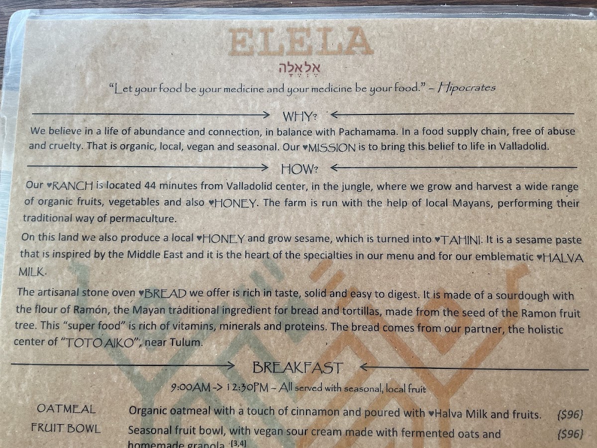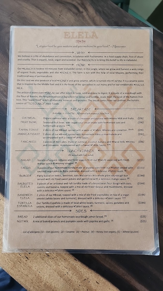 ELELA ORGANIC VEGAN CAFE Y RESTAURANT Menu